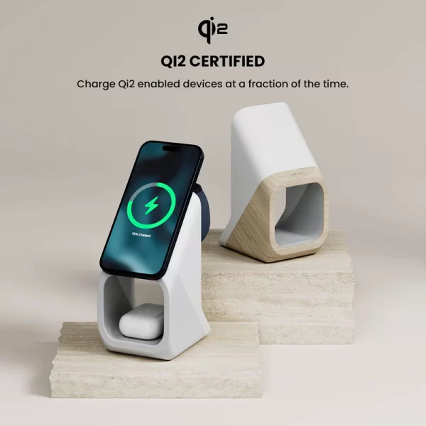 - Delivers up to 15W fast wireless charging for iPhones (12 and onwards), fast charging for Apple Watches, and AirPods.